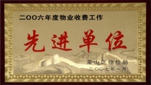 2006年萊山區(qū)物業(yè)收費工作先進單位