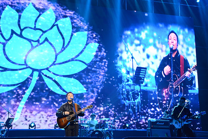 2019年1月6日晚,備受矚目的“萬光城建23周年業(yè)主答謝晚會”在煙臺市體育館正式啟幕,公益演出現(xiàn)場人氣爆滿,座無虛席,來自國內(nèi)外的眾多知名樂隊(duì)、中國好聲音歌手及煙臺本土藝人輪番獻(xiàn)藝,贏得了觀眾的陣陣掌聲;國內(nèi)搖滾表演藝術(shù)家許巍及原班音樂團(tuán)隊(duì)獻(xiàn)唱《曾經(jīng)的你》、《漫步》、《藍(lán)蓮花》等多首經(jīng)典歌曲,令現(xiàn)場歌迷大呼過癮。將晚會氣氛不斷推向高潮,為5000名煙臺市民帶來了一場音樂的視聽盛宴。