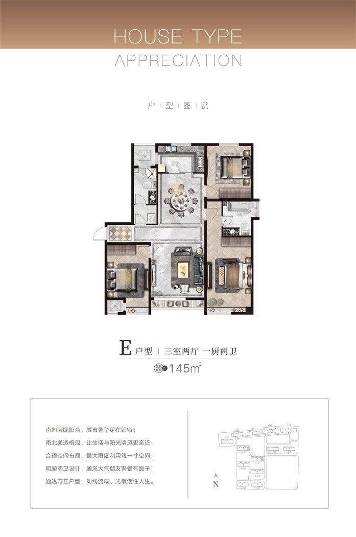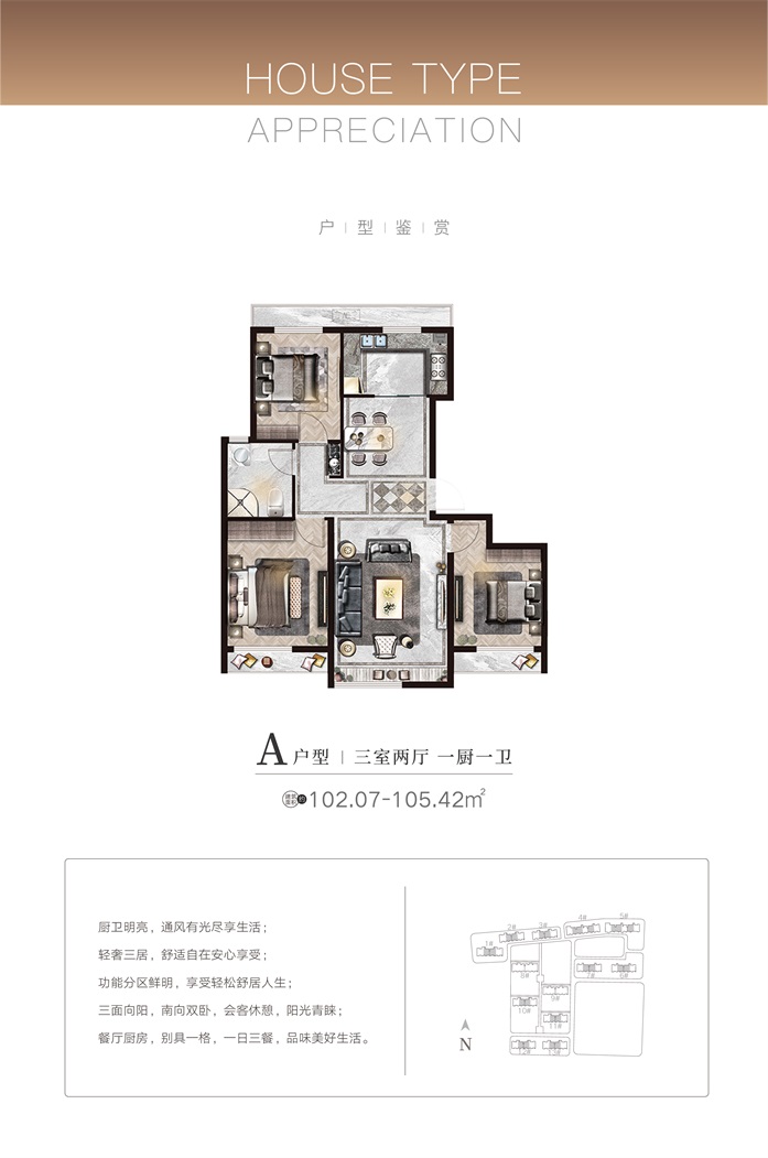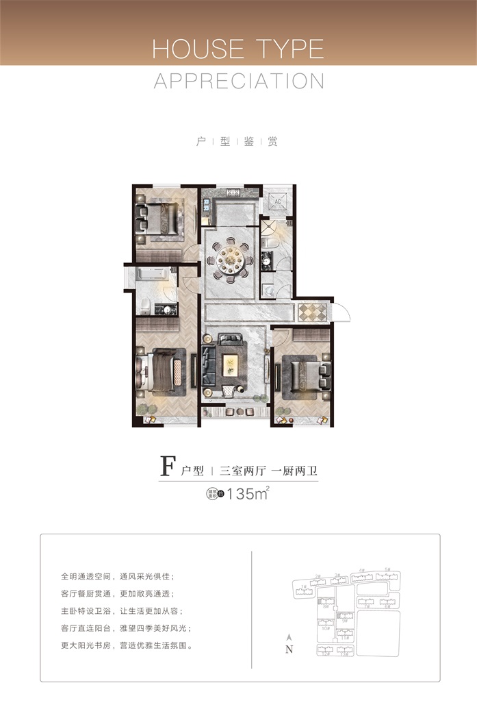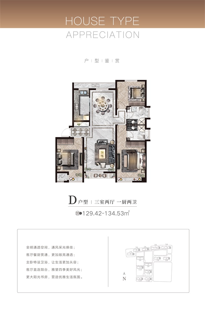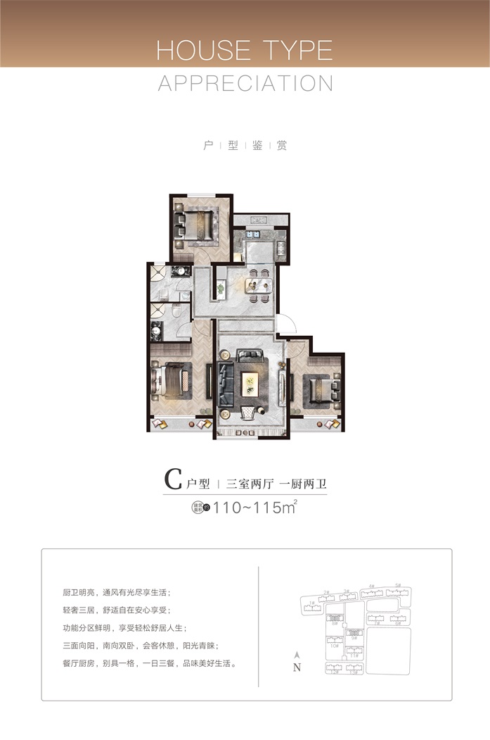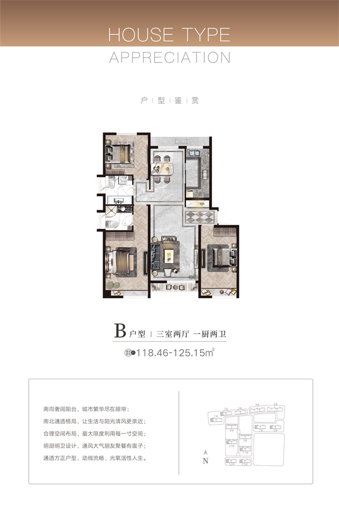 項(xiàng)目首期C地塊規(guī)劃總建筑面積15.56萬平方米,總戶數(shù)1100戶,停車位1238個(gè),現(xiàn)已全部售罄。目前正在銷售的B地塊總建筑面積22.57萬平米,總戶數(shù)約962戶,主力戶型為95-148平方米的精質(zhì)三居/四居,均為一梯兩戶、南北通透的小高層現(xiàn)房。